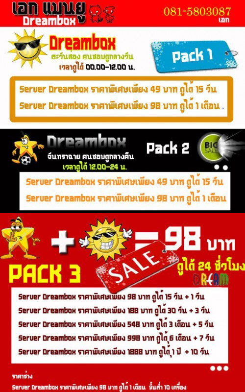 Server Dreambox ราคาพิเศษเพียง 188 บาท ดูได้ 30 วัน + 3 วัน