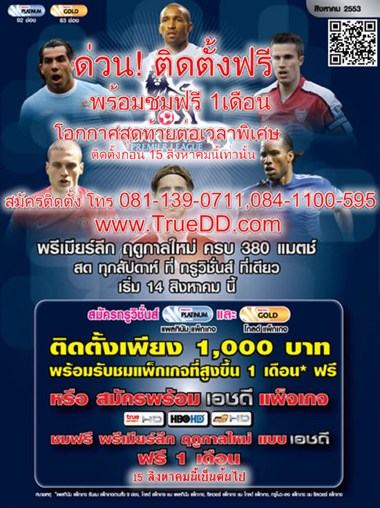ทรู วิ ชั่นส์ สุดยอดช่องรายการชั้นนำของโลก ติดตั้งฟรีทุกเเพกเกจ พร้อมชมฟรี PLATINUM 90 ช่อง ฟรี !!! พร้อมรับค่าโทรทรูมูฟสูงสุด ถึง1,078บาททุกเดือน ประกันอุปกรณ์+ส่งหนังสือโปรเเกรมถึงบ้านฟรีตลอดชีพ ดูรายล่ะเดียดติดตั้งโดยช่างจาก ทรูวิชั่นส์ คลิกเลย