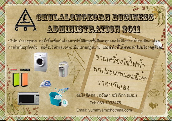 เสนอขายเครื่องใช้ไฟฟ้าภายในบ้านทุกประเภท โดยบริษัทจำลองจุฬาฯ กำไรจากการดำเนินธุรกิจ นำคืนสู่สังคม