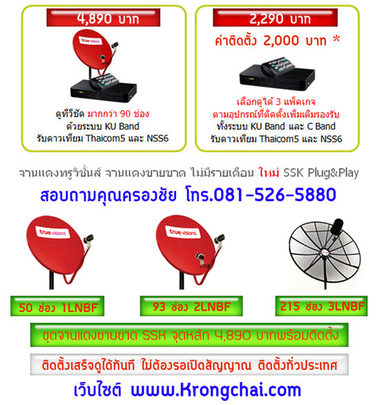 จานแดงขายขาด SSK รุ่นใหม่รับช่องเพิ่มเป็น 90 ช่องรายการ รายละเอียดเพิ่ม http://www.krongchai.com/truelife-SSK.html