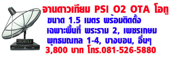 จานดาวเทียม PSI O2N OTA ราคาพร้อมติดตั้ง 3,800 บาท