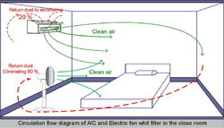 2. หลัง จากที่เปิดพัดลม แรงลมจะทำให้ฝุ่นละอองฟุ้งกระจายไปทั่วบริเวณ ห้องในสภาวะที่เป็นห้องปิด กระแสลมจะไหลย้อนกลับมาด้านหลังของพัดลมและถูกดูดออกไปอีก ซึ่งจะทำให้ฝุ่นละอองฟุ้งกระจายอยูตลอดเวลาที่เราเปิดพัดลม