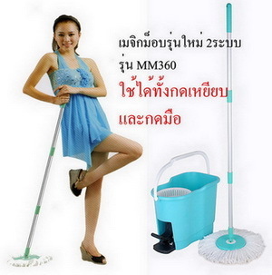 เมจิกม็อบ (magic mob) ไม้ม็อบถูพื้นรุ่นใหม่ ช่วยให้คุณแม่บ้านใช้งานง่ายกว่าเดิมนอกจากเป็นระบบกดเหยียบที่ถังแล้ว ยังเพิ่มระบบกดด้วยมือที่ไม้ม็อบ หัวม็อบที่หมุนได้ 360 องศาช่วยเพิ่มความสะดวกให้กับคุณแม่บ้านในการทำความสะอาด ระบบเฟืองรุ่นใหม่ใช้กลไกลไดเร็คไดรส์ Direct Drive ช่วยให้ทนทานกว่าเดิม ไม่ติดขัดและบำรุงรักษาง่าย ตัวถังทำจากวัสดุอย่างดีเพิ่มความหนากว่าเดิมตกไม่แตกที่ระยะ 3 เมตร ตัวผ้าถูเป็นนาโนชนิดไมโครไฟเบอร์เกรดเอดูดซับได้ดีกว่าผ้าทั่วไปถึงสามเท่าในการใช้งานแบบเปียก หากใช้งานแบบแห้งก็จะเป็นไฟฟ้าสถิต แถมประหยัด ไม่ต้องใช้ไฟฟ้า สเปคดีๆถูกใจคุณแม่บ้านอย่างนี้ต้องรีบซื้อมาใช้แล้ว