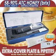 มิเตอร์วัดความหวานของน้ำผึ้ง Brix: 58-90%, Baume: 38-43Be', Water: 12-27% รุ่นใหม่ RHBN-90ATC มีระบบ ATC Brix Refractometer, สามารถปรับโฟกัสได้ มีปุ่มปรับตั้ง Calibrate ที่ตัวมิเตอร์