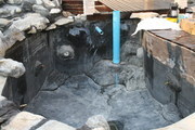 10. ขั้นตอนสุดท้าย ค่อย ๆ ปูวัสดุรองสระ (Liner) ลงไปในสระ ให้ทำอย่างใจเย็นและระวังไม่ให้ย่นด้วย บริเวณส่วนโค้งนั้นต้องพับจีบให้ดี เมื่อจัดวางลงในสระได้แล้วส่วนวัสดุรองสระ (Liner) ที่เหลือบริเวณริม ๆ สระอาจจะวางก้อนหินใหญ่ ๆ และจัดตกแต่งด้วยต้นไม้ตามแต่ใจชอบ