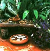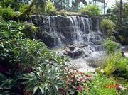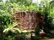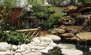 การจัดแบบพื้นราบ มีสระน้ำ บ่อน้ำ ธารน้ำและก้อนหิน