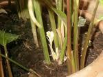 ไม่มีก้านดอกจะอยู่ติดกับพื้นดิน มีสีขาวอมเหลือง โดยแทงดอกขึ้นจากเหง้าหลักที่อยู่ใต้ดินก่อนการงอกขอ งใบว่านดังกล่าวนี้