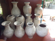 102 เครื่องปั้นดินเผาล้านนา สีเก่าสนิมทะเล น้ำตาล แดง น้ำเงิน เขียว แตกลายงา