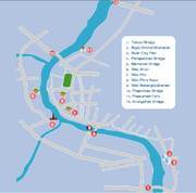 ระหว่างทานชา-กาแฟ เรือจะวิ่งผ่านศาลาว่าการจังหวัดนนทบุรี ซึ่งเป็นอาคารไม้สัก ที่ใหญ่ที่สุด ใน ประเทศไทย, สะพานพระราม ๘ ด้านหลังของวัด พระแก้ว, วัด อรุณราชวราราม ตามลำดับ