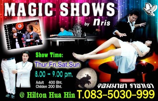 แหล่งท่องเที่ยวหัวหิน โรงละครมายากล nris magic show ที่ โรงแรม ฮิลตัน หัวหิน