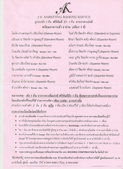 ขออภัยด้วยนะคะ เพราะโรงแรมและที่พักเยอะมากจนพิมพ์ไม่หมด รบกวนดูในไฟล์แนบ สงสัยอะไรก็สอบถามได้ค่ะ เปรี้ยวไม่ใช่พนักงานของบริษัท ak นะคะ แต่เป็นสมาชิกที่ซื้อ vocher มา 2 ชุด และต้องการแบ่งขาย 1 ชุดเสียดายเหมือนกันค่ะ ขายไม่ได้กำไรเลยค่ะ แต่เก็บไว้ก็ใช้ไม่หมดเสียดายโปรโมชั่นค่ะ