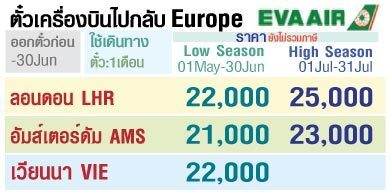 โปรโมชั่นใหม่ สายการบิน EVA AIR เส้นทาง อัมเตอร์ดัม ลอนดอน เวียนนา สนใจติดต่อ หจก.โกลเบิลเบลสซิ่ง 02-7285966 / 086-3141522