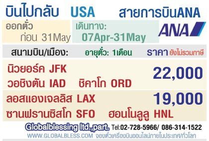 โปรโมชั่นตั๋วเครื่องบินสายการบิน ALL NIPPON AIRWAYS เส้นทางอเมริกา นิวยอร์ค, วอชิงตัน, ชิคาโก, ลอสแองเจลลิส, ซานฟรานซิสโก, โฮโลลูลู