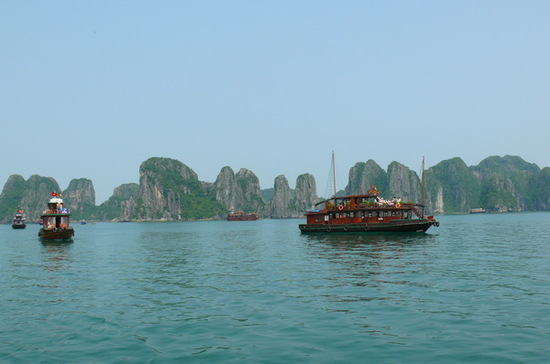 นำท่านออกเดินทางสู่ท่าเรือ เพื่อล่องเรือชมความงามตามธรรมชาติ ที่สรรค์ สร้างด้วยความงดงามดังภาพวาดโดยจิตกรเอก อ่าวฮาลองประกอบด้วยหมู่เกาะน้อยใหญ่กว่า 1,900 เกาะ และได้รับการประกาศเป็น “มรดกโลก”โดยองค์การยูเนสโก อ่าวแห่งนี้เต็มไปด้วยภูเขาหินปูนมากมาย ระหว่างการล่องเรือท่านจะได้ชมความงามของเกาะแก่งต่าง ๆ ทั้งเกาะหมา เกาะแมว เกาะไก่ชน ฯลฯ นำท่านชมถ้ำสวรรค์ ชมหินงอกหินย้อยมากมาย ล้วนแต่สวยงามและน่าประทับใจยิ่งนัก ถ้ำแห่งนี้เพิ่งถูกค้นพบเมื่อไม่นานมานี้ ได้มีการประดับแสงสีตามผนังและมุมต่าง ๆ ในถ้ำ ซึ่งบรรยากาศภายในถ้ำท่านจะชมความสวยงามตามธรรมชาติที่เสริมเติมแต่งโดยมนุษย์ แสงสีที่ลงตัวทำให้เกิดจินตนาการรูปร่างต่าง ๆ มากมาย ทั้ง รูปมังกร เสาค้ำฟ้าทั้ง 4 เสา รูปปีกอินทรี รูปนางฟ้า รูปคู่รักหนุ่มสาว พระพุทธรูป ฯลฯ ตลอดจนเลือกซื้อสิ้นค้าที่ระสึกต่างๆ ตามอัธยาศัยได้เวลาอันสมควรนำท่านกลับสู่เรือเพื่อเดินทางกลับสู่ท่าเรือฮาลอง