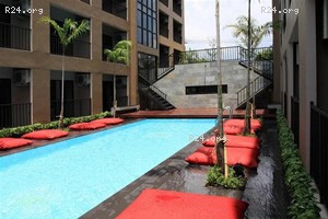 สระว่ายน้ำของเดอะคอทเทจสุวรรณภูมิ ถูกออกแบบให้อยู่ระหว่างตึกห้องพักทั้ง 2 ตึกเพื่อที่ เกือบทุกห้องสามารถได้ผ่อนคลายจากบรรยากาศของสระไว้น้ำและสวนที่รื่นรมสวยงามอย่างลงตัว