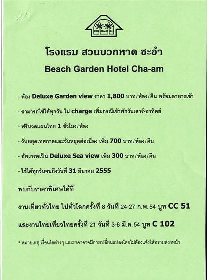 - ขาย voucher โรงแรมสวนบวกหาดชะอำ 1800 บาท deluxe garden view + อาหารเช้า ! -