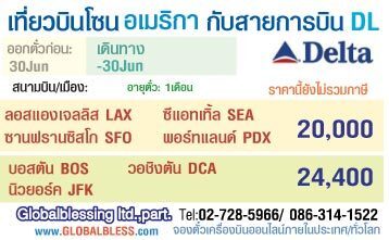 โปรโมชั่นตั๋วเครื่องบินสายการบินเดลต้า DELTA AIR LINES ไปอเมริกา ลอสแองเจลลิส ซีแอทเติ้ล ซานฟรานซิสโก พอร์ทแลนด์ บอสตัน วอชิงตัน นิวยอร์ค สนใจติดต่อได้ที่ หจก.โกลเบิลเบลสซิ่ง 02-7285966 / 086-3141522