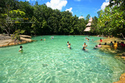 14.00 น. นำท่านเดิน เพลิดเพลินกับเส้นทางธรรมชาติ สระมรกต สระน้ำสวยใสกลางป่าใหญ่ ต้นกำเนิดจากตาน้ำใต้ดินไหลผ่านชั้นหินปูนแล้วตกตะกอน จึงทำให้มองเป็นสีเขียวมรกต และไปยังน้ำตกร้อน สายน้ำแร่ธรรมชาติที่เกิดจากตาน้ำใต้พิภพ ไหลผ่านลำธารและตกลงมาเป็นชั้นน้ำตกหินปูนเล็ก ๆ
