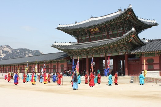 จากนั้นนำชม บลูเฮาส์ ทำเนียบของประธานาธิบดี (ระหว่างรถแล่นผ่านไม่อนุญาตให้ถ่ายภาพหรือวีดีโอใดๆทั้งสิ้น) แวะถ่ายรูปเป็นที่ระลึกกับอนุสาวรีย์ นกฟีนิกซ์ สัญลักษณ์ความเป็นอมตะ และชมทัศนียภาพอันสวยงามของภูเขารูปหัวมังกร และวงเวียนน้ำพุ ซึ่งนับเป็นจุดที่มีฮวงจุ้ยที่ดีที่สุดของกรุงโซล จากนั้นชม พระราชวังเคียงบ็อค ซึ่งเป็นพระราชวังไม้โบราณที่เก่าแก่ที่สุด สร้างขึ้นใน ค.ศ. 1394 หรือในอดีตกว่า 600 ปีก่อน ภายในพระราชวังแห่งนี้มีหมู่พระที่นั่งมากกว่า 200 หลัง แต่ได้ถูกทำลายไปมากในสมัยที่ญี่ปุ่นเข้ามาบุกยึดครอง ทั้งยังเคยเป็นศูนย์บัญชาการทางการทหารและเป็นที่ประทับของกษัตริย์ ปัจจุบันได้มีการก่อสร้างหมู่พระที่นั่งที่เคยถูกทำลายขึ้นมาใหม่ในตำแหน่ง เดิม ถ่ายภาพคู่กับพลับพลากลางน้ำเคียงเฮวรู ที่ซึ่งเคยเป็นท้องพระโรงออกงานสโมสรสันนิบาตต่างๆ สำหรับต้อนรับแขกบ้านแขกเมือง