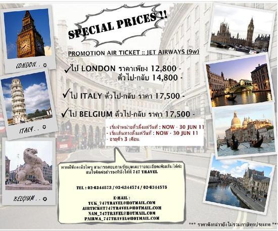 >>>Special prices !!! ไปเที่ยวกันไหม ? . . . LONDON,ITALY,BELGIUM . . . เดินทางในราคาสุดคุ้มกับสายการบิน Jet Airways (9W)<<<