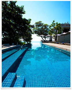 เพลิดเพลินกับบรรยากาศริมทะเล กับสระว่ายน้ำอินฟินิตี้ที่ออกแบบได้อย่างสวยงาม ที่ดูเหมือนทอดยาวไปในทะเล