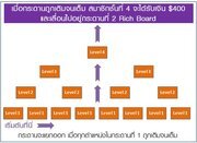 • การรับรายได้ตามแผนการตลาดแบบกระดานหมุนเวียน คือ กระดานแรกหรือจะเรียกว่ากระดานส้มก็ได้ค่ะ จะมีทั้งหมด 4 ระดับหรือเรียก 4 ชั้น เราเริ่มต้นเหมือนกันทุกคน เข้ามาครั้งแรกคืออยู่ชั้นล่างหรือชั้นที่1 ในชั้นที่1 จะมีที่ว่างแค่ 8 รหัส พอเต็มเราจะเรียกว่ากระดานส้มแตก คนที่ทำงานมาก่อนเราก็อยู่ในชั้นที่4 คือตำแหน่งบนสุด เค้าก็จะรับรายได้ ไปก่อนคือ $400 เหรียญสหรัฐ ประมาณเงินไทย 15,000 บาทค่ะ การรับรายได้คือคนทุกคนที่อยู่ในหน้ากระดานส้ม ต้องช่วยกันทำงาน คือแนะนำมาในบริษัทใหม่เท่านั้นค่ะ ก็รับรายได้จากทางบริษัทโกลบอลริชคลับ จ่ายให้คุณโดยตรง