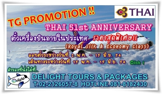 PROMOTION TG 51th Anniversay บัตรโดยสารราคาพิเศษภายในประเทศ