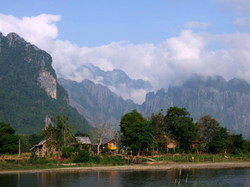 13.00 น. เดินทางมุ้งหน้าสู้เมืองวังเวียงสายน้ำซองไหลผ่าน
