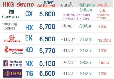 ตั๋วเครื่องบินเส้นทางกรุงเทพฯ - ฮ่องกง มีหลายสายการบินให้ท่านได้เลือกเดินทางสนใจติดต่อที่ หจก.โกลเบิลเบลสซิ่ง 02-7285966 / 086-3141522
