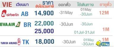 ตั๋วเครื่องบินเส้นทางกรุงเทพฯ - เวียนนา มีหลายสายการบินให้ท่านได้เลือกเดินทาง ติดต่อได้ที่ หจก.โกลเบิลเบลสซิ่ง 02-7285966 / 086-3141522