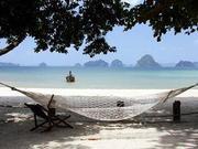 สถานที่ที่เงียบสงบแห่งหนึ่งเมื่อสิ้นสุดจากหาดคลองม่วงก็ คือ หาดทับแขก ซึ่งเป็นหาดที่สวยงามที่สุดอีกหาดหนึ่งของจังหวัดกระบี่ ที่ยังไม่เป็นที่รู้จักกันมากนักในหมู่นักท่องเที่ยวหาดทับแขกจึงเป็นหาดที่ยังอุดมสมบูรณ์ไปด้วยความงดงามทางธรรมชาติ ที่บรรงจงสร้างขึ้นมาเพื่อเหมาะแก่การพักผ่อนสำหรับนักท่องเที่ยวอย่างแท้จริง และ โรงแรม ทับแขก ซันเซ็ท บีช รีสอร์ท ก็เป็นโรงแรมหนึ่งที่ซ่อนตัวอยู่ท่ามกล่างดงสน ที่กำลังรอผู้คนมาค้นพบกับความงดงามที่สุดแสนจะบรรยายของหาดทับแขก