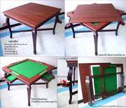 2) โต๊ะเล่นไพ่แบบพิเศษขาสิงค์ เน้นดีไซน์ ผิวลายไม้ธรรมชาติ ขาโต๊ะเป็นขาสิงห์โค้ง ขอบโต๊ะเดินคิ้วและเป็นลายจีนรอบ พิเศษมีที่วางแก้วน้ำครบทั้ง 4 ที่ มีฝาครอบโต๊ะผิวขัดเงาโชว์ลายไม้สักเคลือบแข็งกันรอยขีดข่วน ใช้เป็นโต๊ะทำงานหรือโต๊ะเอนกประสงค์ได้ ส่วนประกอบทั้งหมด ฝาครอบโต๊ะ-พื้นโต๊ะ-ขอบโต๊ะ-ขาโต๊ะ ถอดได้ทุกชิ้น พับเก็บและเคลื่อนย้ายสะดวก ราคาโรงงานไม่แพง