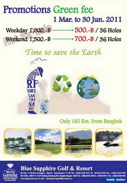 Promotion Green fee เริ่มต้นเพียง 500 บาท ตีได้ครบ 36 หลุม เริ่มแล้ววันนี้ ถึง 30 มิถุนายน 54 นี้เท่านั้น