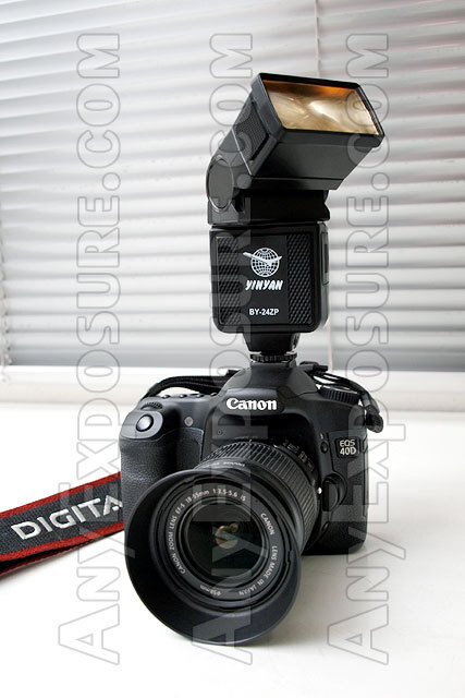 แฟลชอิเล็คทรอนิค ระบบ Manual จากค่าย YINYAN สำหรับกล้องดิจิตอล หรือกล้องฟิล์มทุกรุ่น (ที่เป็น Hot shoe มาตราฐาน) ให้กำลังไฟแรงในราคาย่อมเยาว์ หัวแฟลชปรับก้มเงยและหันซ้าย-ขวา เพื่อควบคุมทิศทางของแสง ทั้งการถ่ายภาพแนวนอนและแนวตั้งได้