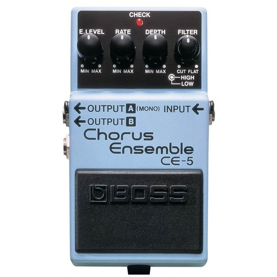 The CE-5 Chorus Ensemble is BOSS' ultimate compact chorus pedal, covering a wide frequency range and featuring high- and low-cut filters. This lets users create any kind of chorus effect--from a mild, natural chorus to the clear and penetrating stereo chorus effect popular in contemporary music.