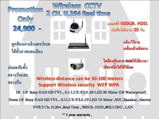กล้องวงจรปิดไร้สาย (Wireless CCTV) ไม่ต้องยุ่งยากเดินสาย RG6 เสียบไฟใช้ได้เลย มีทั้งแบบภายนอกและภายในบ้าน ส่งสัญญาณได้ไกลถึง 50 เมตรในที่โล่งและ 30 เมตรภายในบ้าน ดูผ่านเนตได้ทั้งภาพและเสียง สนใจดูรายละเอียดได้ที่ www.thewirelesscctv.com
