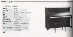 Miki เป็นเปียโน ตระกูล Yamaha หลังนี้สูง 121 ซม. สูงเท่า U1 ภายในเป็นกลไกของ Yamaha