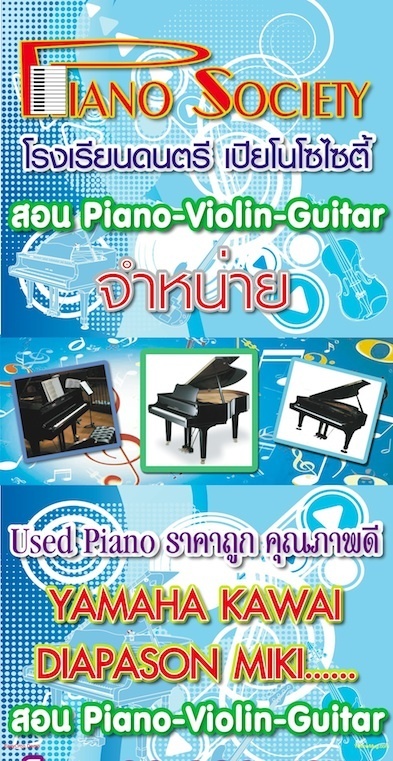 โรงเรียนดนตรีเปียโนโซไซตี้ ถนนบรมราชชนนีเลยเซ็ลทรัลปิ่นเกล้า 1.5 ก.ม. เปิดสอน Piano Violin Guitar 02-880-7377 / 081-812-5484
