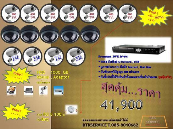 โปรโมชั่น DVR H.264 16 ช่อง free กล้อง 16 ตัว ,HDD,สายRG6