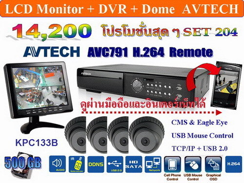 เครื่องบันทึกภาพ DVR AVTECH Support HardDisk 2000 GB กล้อง DOME AVTECH Infrared 133D ราคฺาชุดโปรโมชั่นพิเศษ