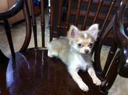 ขายลูกชิวาวา ขนยาว สายเลือดดี เพศผู้ 1 ตัว เพ็ดเต็มใบ (สีช็อคแทน)