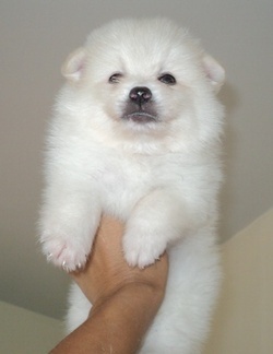 ขายปอมสีขาวเพศผู้อายุ 2 เดือนกว่า น้องเกิดวันที่ 15 มีนาคม 2554น้องถ่ายพยาธิแล้ว