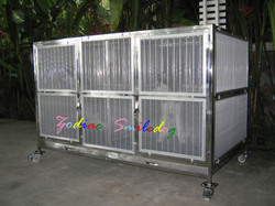 กรงแสตนเลสเกรด A โครงสร้างแข็งแรง สวยงาม ด้วยสแตนเลสขนาดใหญ่ ป้องกันการบิดตัวและเพิ่มความแข็งแรง พร้อมมุ้งลวดและเสริมถาดรองฉี่แสตนเลสป้องกันยุงด้านล่าง ไม่ว่าจะเลี้ยงนอกบ้าน หรือภายในบ้านก็หมดห่วงเรื่องยุงหมดปัญหาเรื่องขนฟุ้งกระจาย ซึ่งยุงเป็นพาหะของโรคพญาธิหนอนหัวใจ และหมดปัญหาเรื่องกรงเป็นสนิม สีหลุดร่อน ต้องพ่นต้องทากันทุกปี เวลาที่โดนน้ำลาย โดนกัดแทะ หรือสุนัขฉี่ในกรง โดยไม่ต้องเปลี่ยนกันทุกๆ 3 ปี เพื่อสัตว์เลี้ยงแสนรักและประหยัดงบประมาณในระยะยาวของคุณ เลือกใช้กรงสุนัขแสตนเลส ZODIAC SMILEDOG และรับสั่งทำกรงสุนัขแสตนเลสทุกขนาด และงานแสตนเลสต่าง ๆ ตามแบบของท่านในราคามิตรภาพ