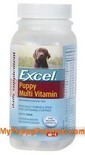 Excel Puppy Multivitamins are tasty, New Garlic-flavored chewable tablets that provide the correct balance of vitamins and minerals essential for growing puppies. Veterinarian recommended, fortified with DHA and ARA, important for mental and visual development. Advanced time-release formula releases slowly throughout the day. Tablets may be hand fed or crumbled and mixed with food. Each bottle contains 100 tasty chew tabs. Made in USA.