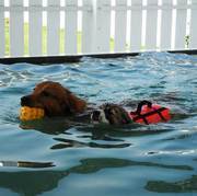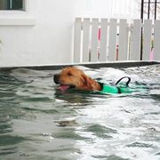 ซึ่งนอกจากความสนุกสนานแล้ว การว่ายน้ำยังช่วยบำบัด และฟื้นฟูสุนัข