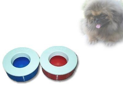 ชามใส่น้ำ มีฝาปิดเพื่อป้องกันน้ำหก เหมาะสำหรับสุนัขขนยาว เพราะรูตรงกลางฝากันไม่ให้ใบหน้าสุนัขจุ่มลงในชามจึงไม่ทำให้หน้าสุนัขเปียก น้ำ มีสีแดงและน้ำเงิน