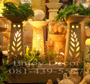 ขายม่านน้ำ น้ำพุ น้ำผุด น้ำล้น เสริม ฮวงจุ้ย โคมไฟหินทราย ดอกลีลาวดี จัดสวน อุปกรณ์ประดับสวน โคมไฟ ลูกกลม น้ำล้น ตุ๊กตาหินทราย แผ่นภาพติดผนัง แผ่นจิ๊กซอว์หินทรายติผนัง โต๊ะนั่งเล่นในสวน ตุ๊กตาช้างพ่นน้ำ ขนาดต่างๆ สามารถจัดในมุมเล็กๆ ในคอนโดหรืออพาร์ทเมนท์ได้