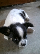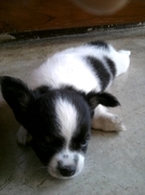 ลูกสนัขพันธุ์ชิวาวาขนยาว เพศผู้ สีขาวดำ หัวโต แข็งแรง