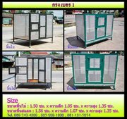 ขนาดกรงพื้นไม้ : หน้ากว้าง 1.80 ซม. x ความลึก 1.20 ซม. x ความสูง 1.40 ซม.