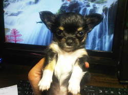 ชิวาวา น้องไซส์จิ๋ว แน่นอนคร๊าบบบบ สีแบล็คแทน มาร์คสวยมาก บาล้าน สุดๆ นานๆ จะเต็มแบบนี้ เพศผู้ สองเดือน